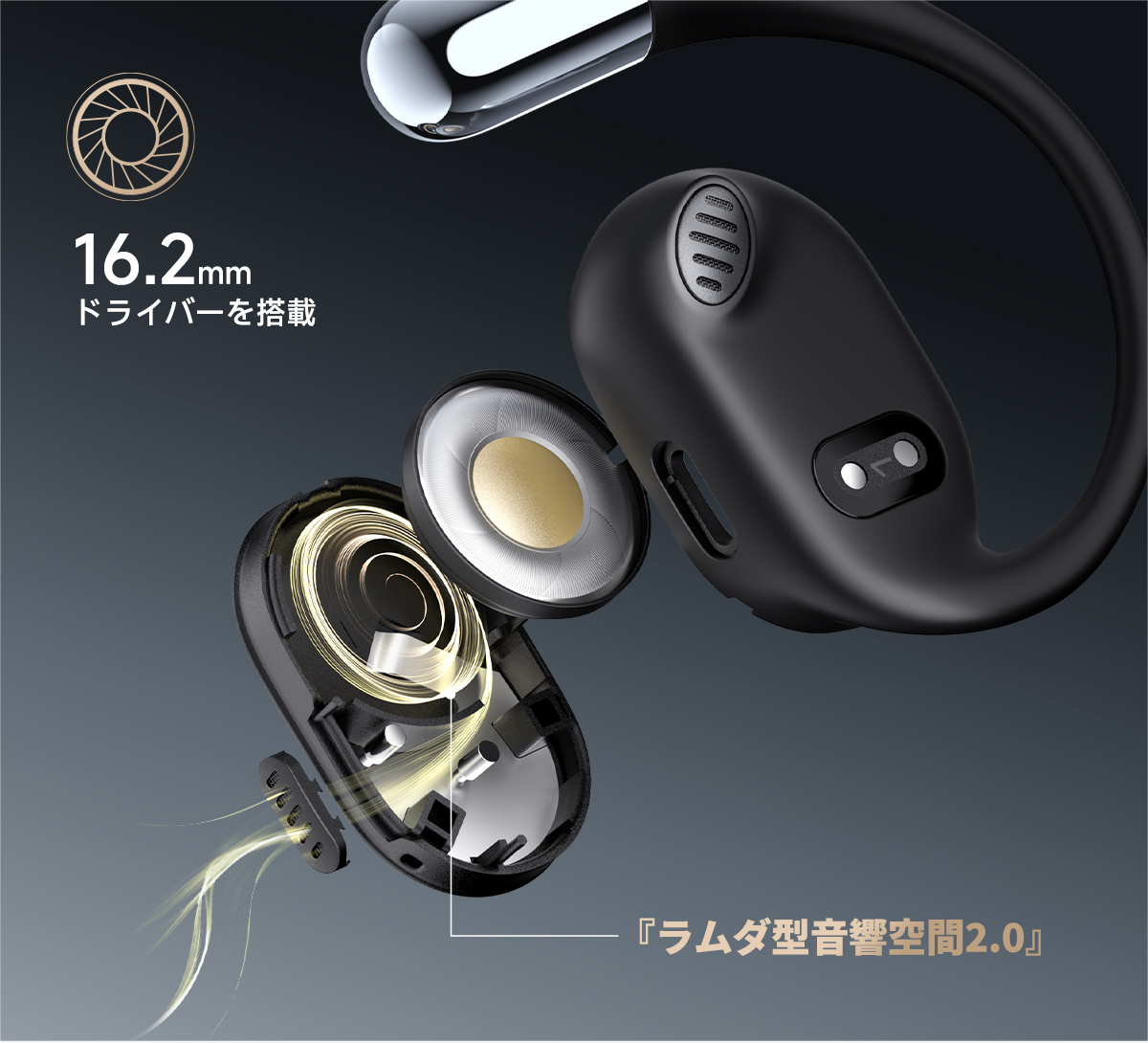 このタイプのイヤホン(耳をふさがないオープンイヤーイヤホン)が小型ではない理由がここにあります。